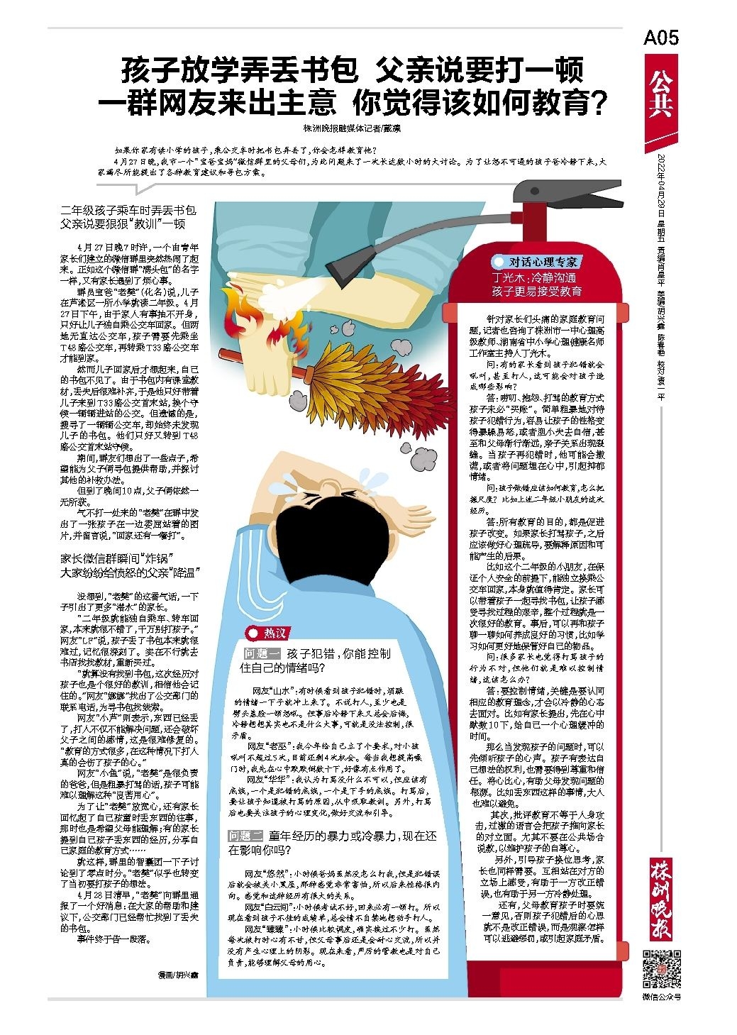 孩子放学弄丢书包 父亲说要打一顿一群网友来出主意 你觉得该如何教育?