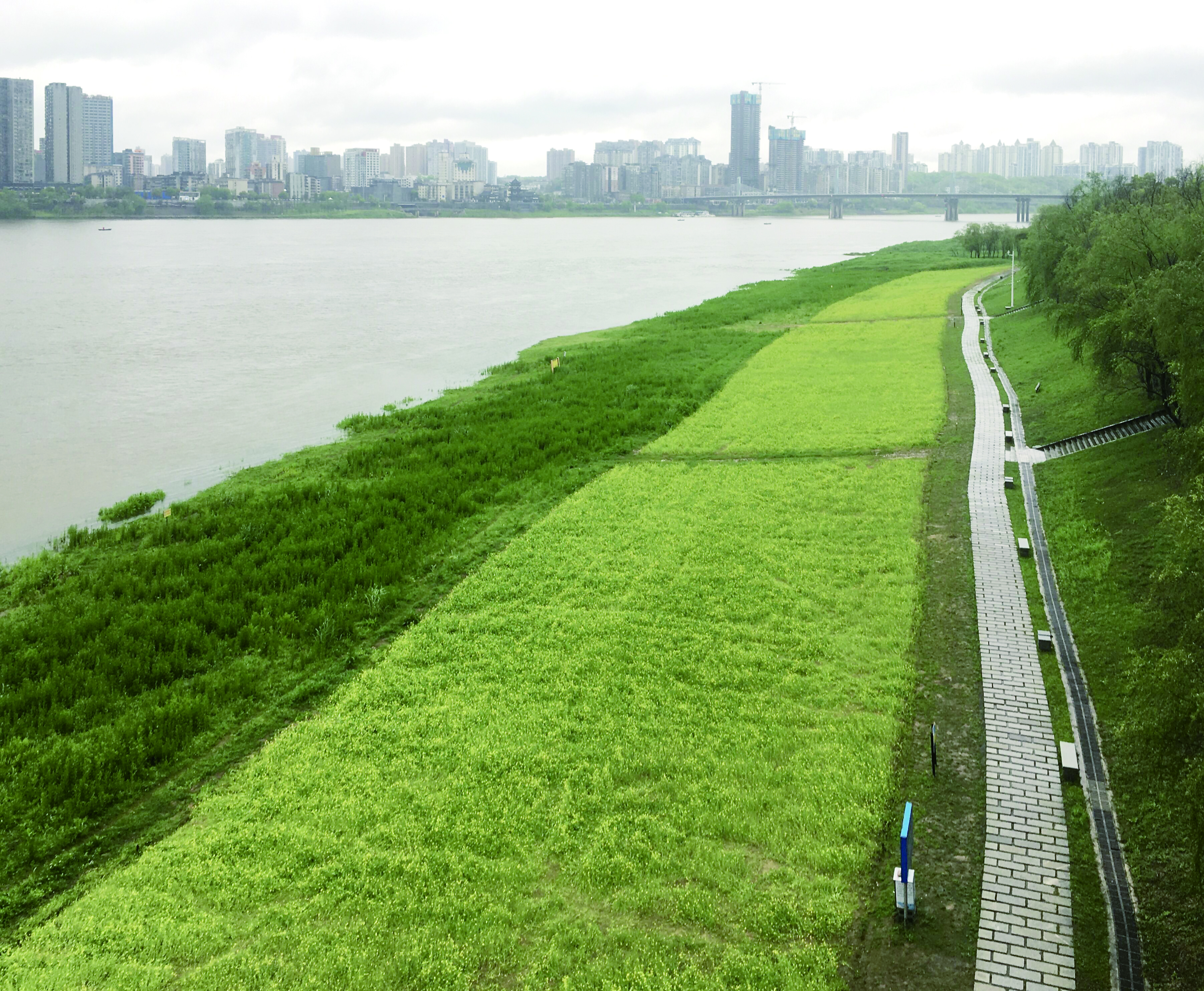 ▶位于株洲大桥两侧的“北沙滩”,大面积栽种油菜花。 记者/刘平 摄