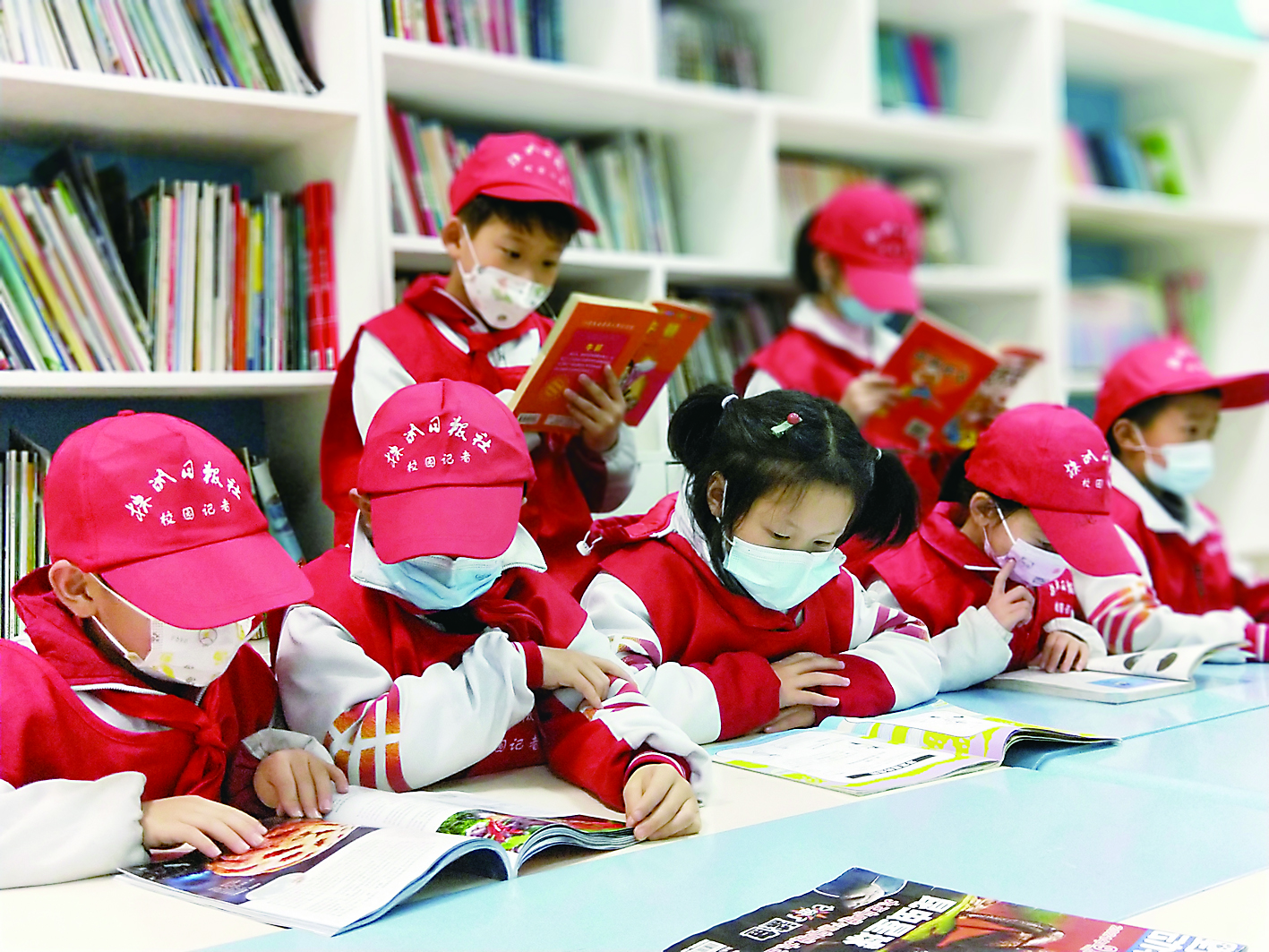 ▲荷塘外国语学校的校园记者们在学校阅览室阅读。 校方供图
