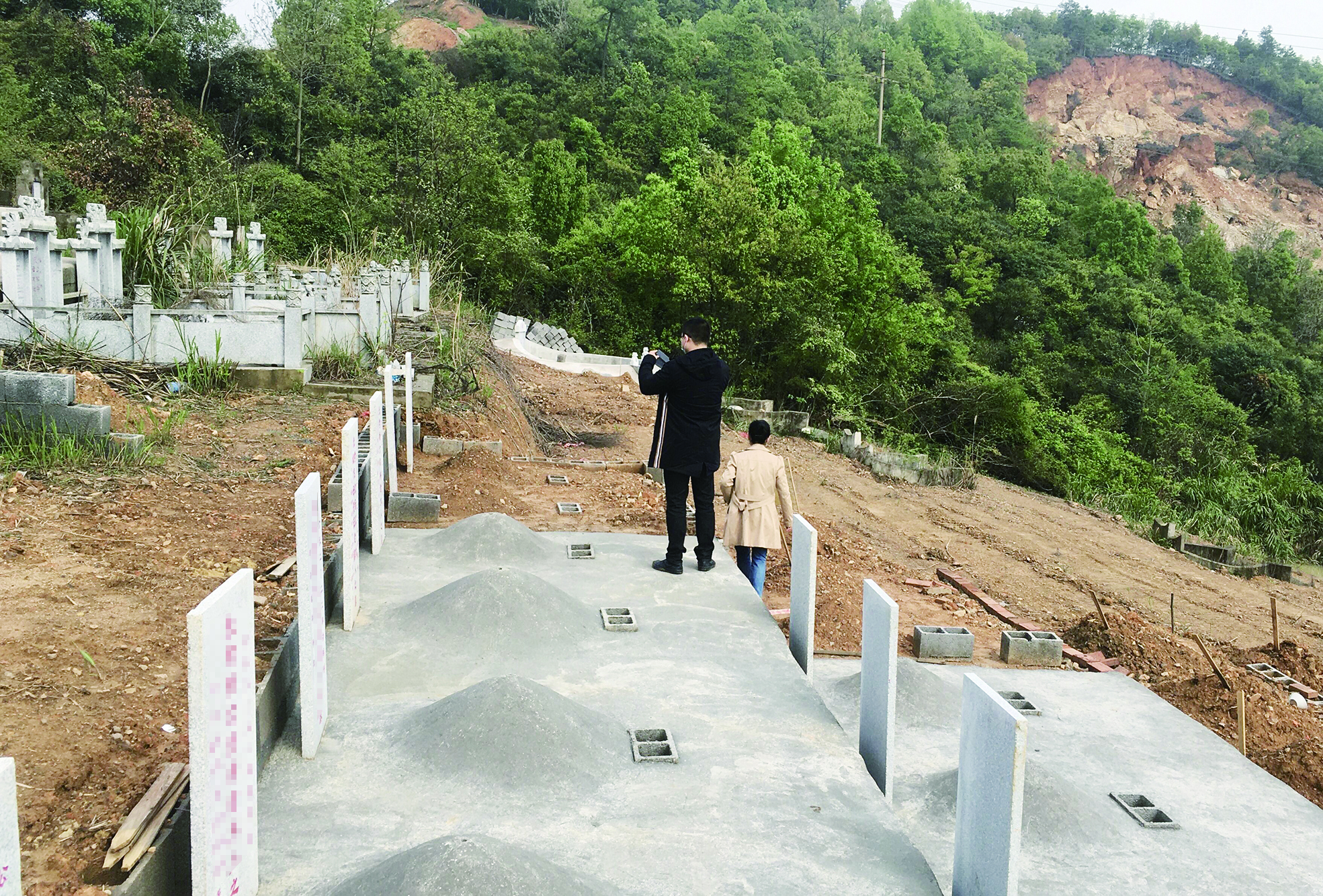 ▲巡察组工作人员在墓地核实情况。记者/刘平 摄