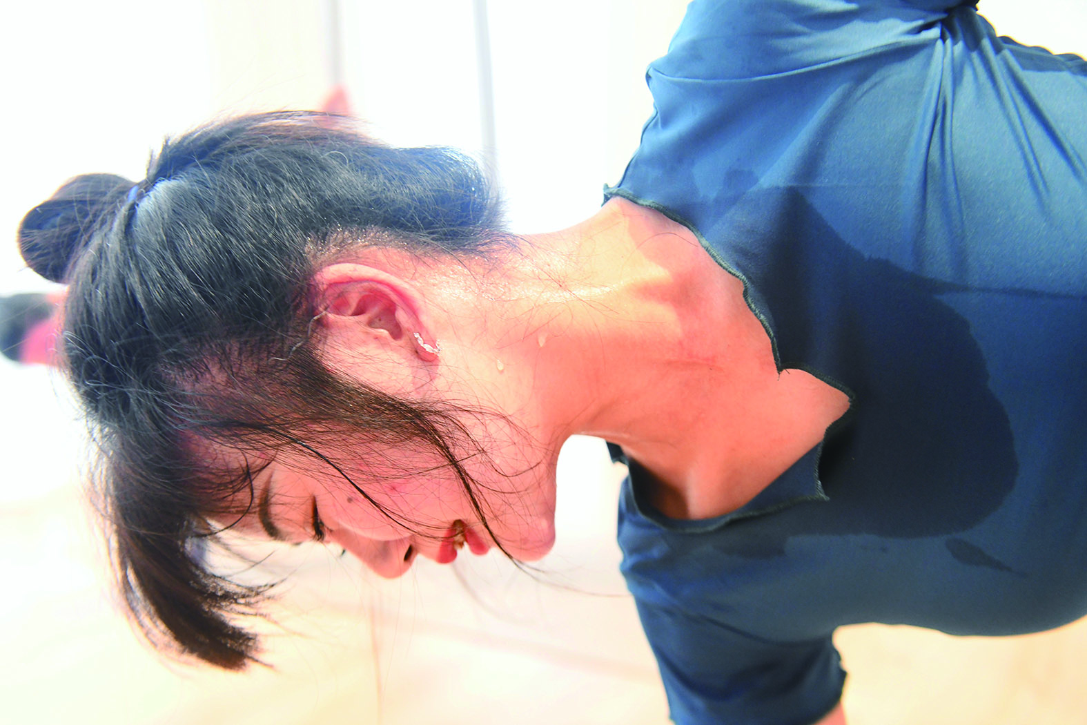 ◀看似柔软的动作,却需要不少力量来支撑,不到半小时工夫,小姐姐已经大汗淋漓。