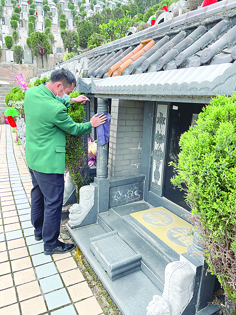 今年,受疫情影响,有40多位顾客选择了代祭扫服务。为了慰藉家属对逝者的思念之情,每次代祭扫,我和同事都会将祭扫过程拍摄下来发送给家属。面对家属的要求,他们也都会尽量满足。去年,有个大姐希望我们代祭扫时为她老伴烧点纸钱,我们只能多次解释,禁止明火,最终想出解决方案:等下班之后,将写着逝者姓名的纸钱带到专用焚烧炉烧掉。今年,这位大姐又联系我们,仍由我代祭扫。逝者家属的信任,也是这份工作的意义所在。