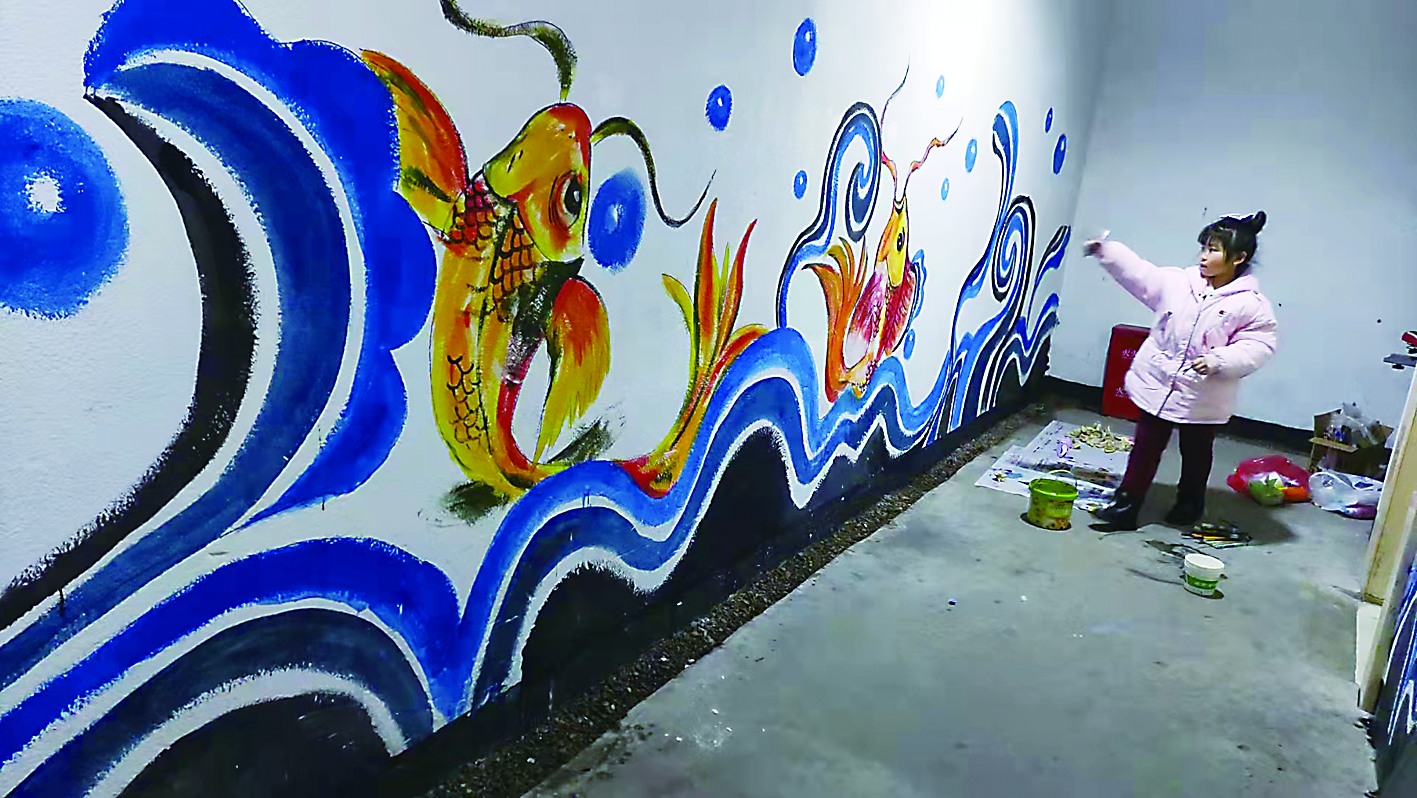 ▲余甜甜用涂鸦扮靓小区。受访者供图