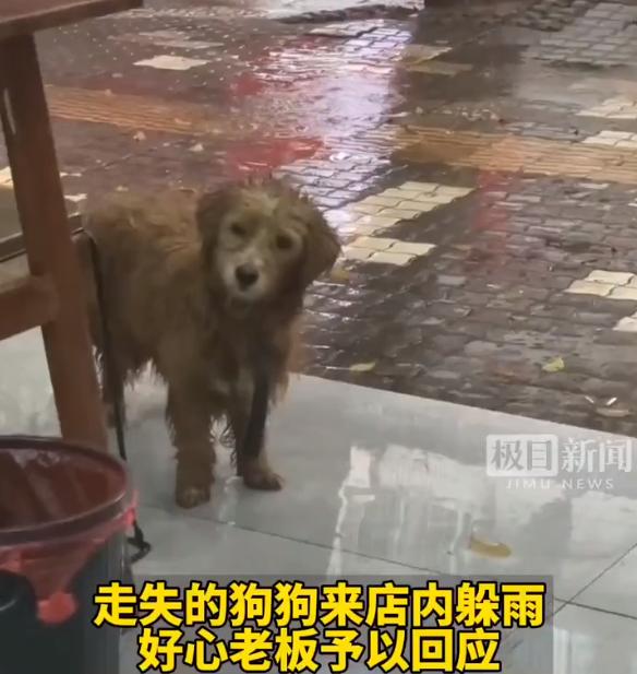 4月3日,株洲网友在抖音上分享了一则有爱的视频。视频中,天上正下着大雨,一只狗狗浑身湿漉漉地跑到店里来躲雨。小狗安静地站在店门口,饥肠辘辘的它歪着头看着老板,好似在求助。看到小狗如此乖巧可爱,老板的心瞬间就被萌化了,于是他拿来一盆食物准备给小狗吃。