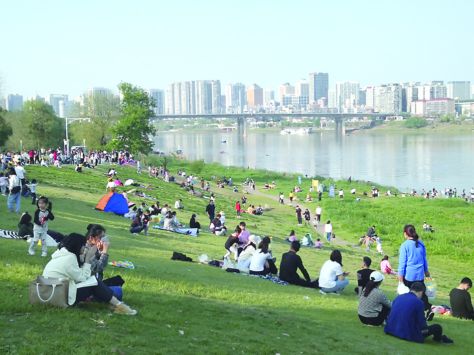 ▲4月3日,河西湘江风光带钢琴广场,市民在享受着快乐的假日时光。 通讯员/黄清卫 摄
