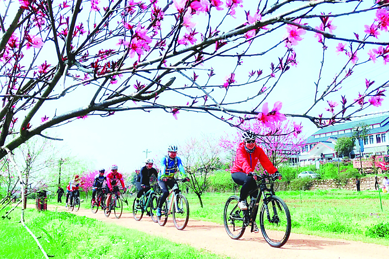 ▲春光无限好,户外运动爱好者骑行踏青。 网友/殷红 摄