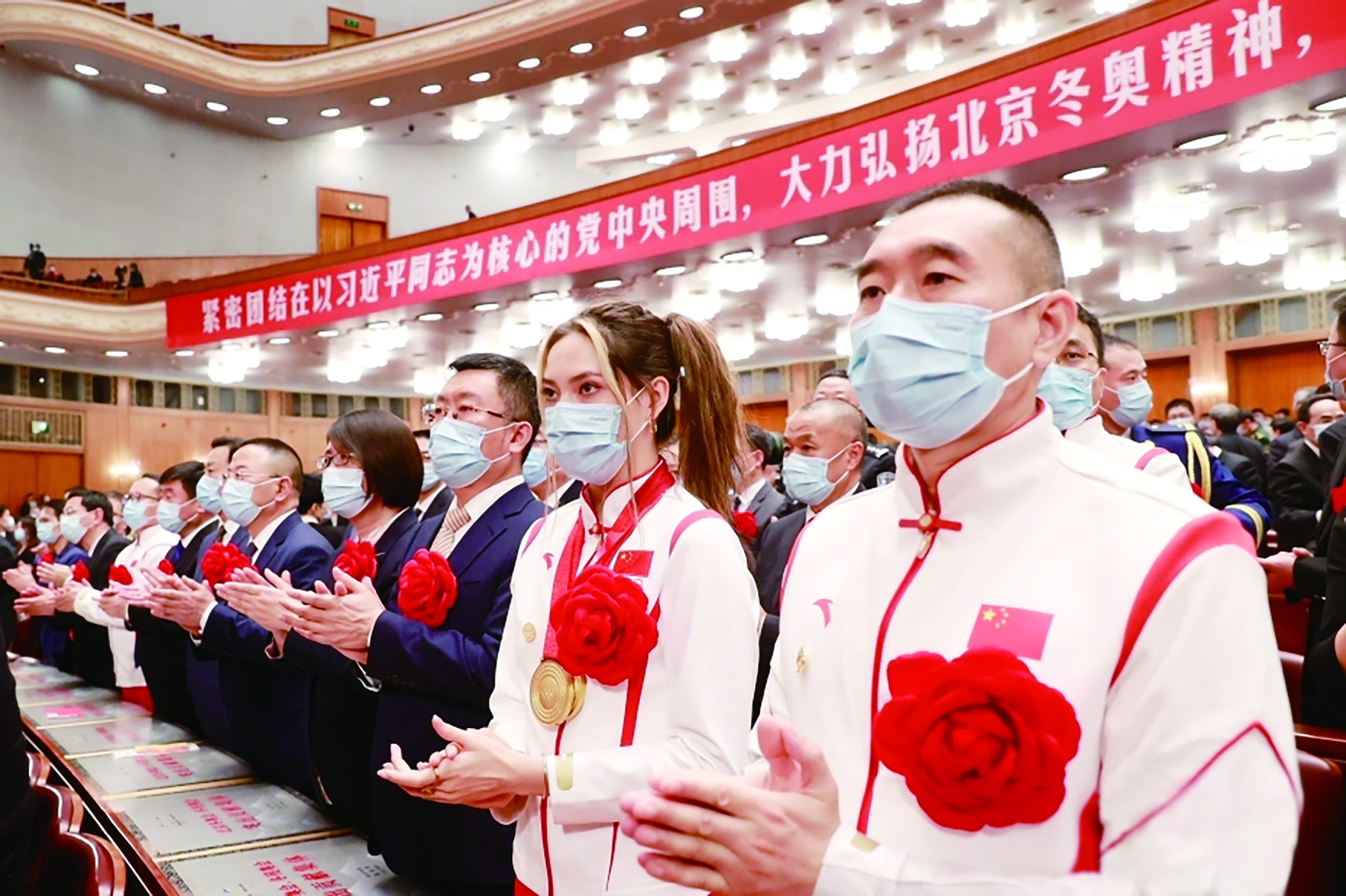 ▲4月8日,北京冬奥会、冬残奥会总结表彰大会在北京人民大会堂隆重举行。 中新社记者 盛佳鹏 摄