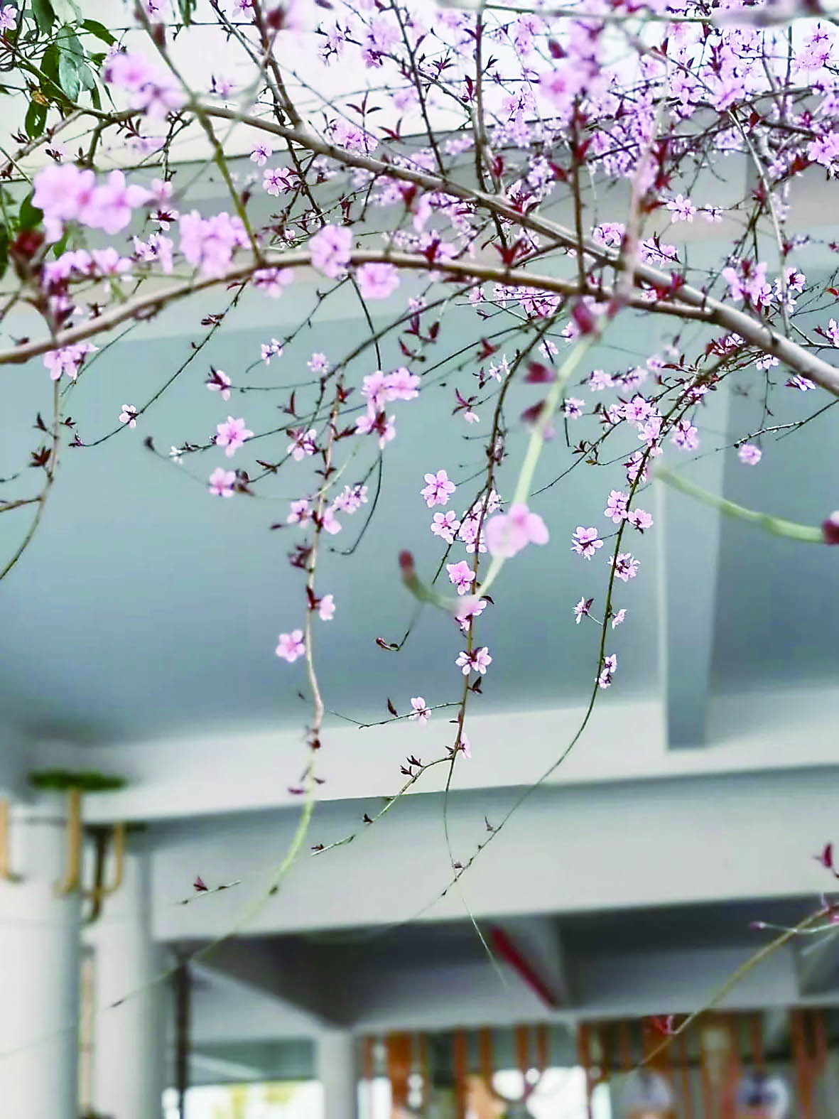 太阳推开阴霾,天也开阔起来,徜徉于菁菁校园,处处风景如画,一点嫩绿枝头,一朵粉红希望,都是孩子们春天的私藏。