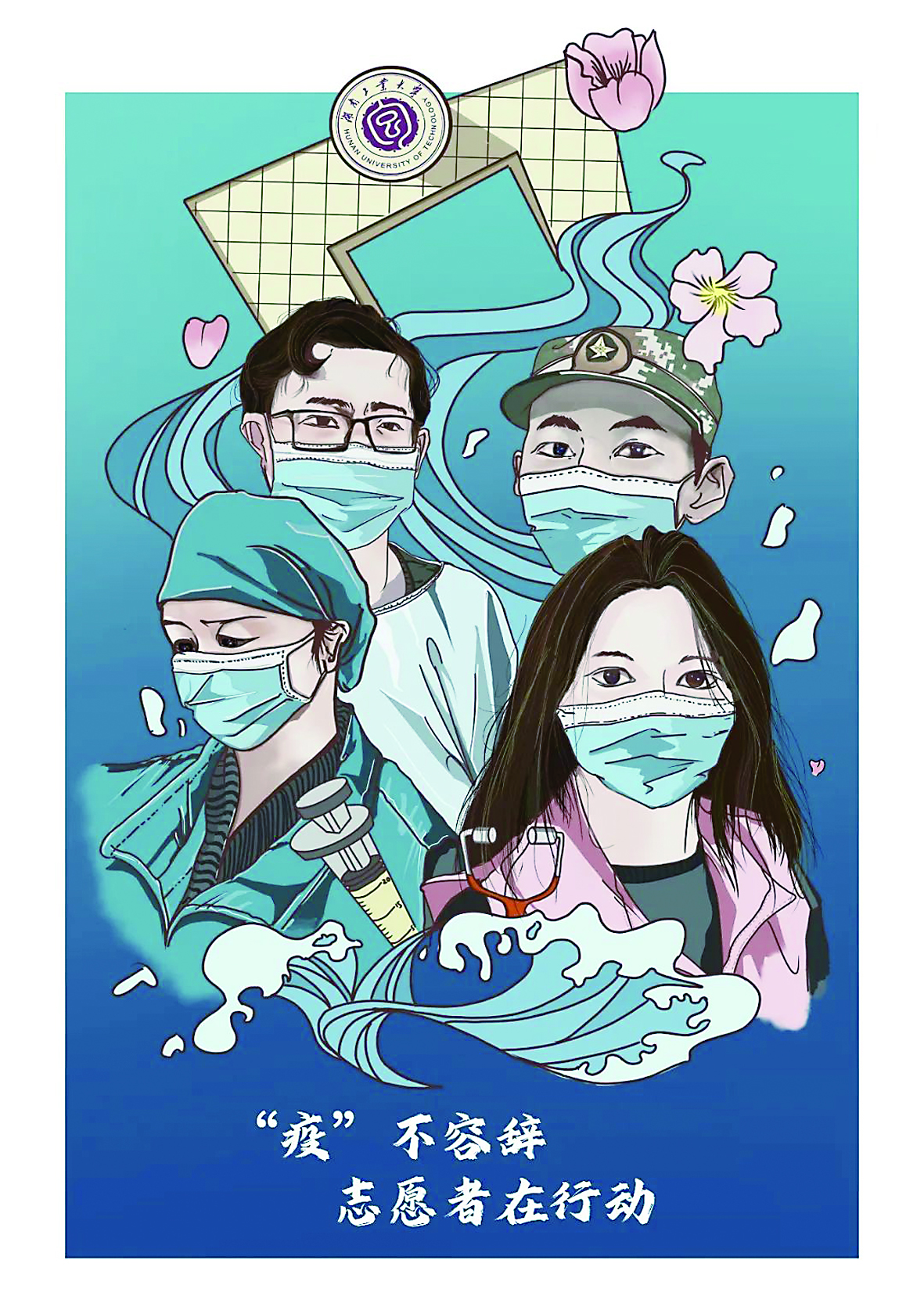 “口罩下,大家都看不清楚谁是谁,但是在他们的眼神里,我能看到温柔、坚毅、专注、乐观……他们是让人敬佩的‘疫’线战士。”一名参与创作的学生说。