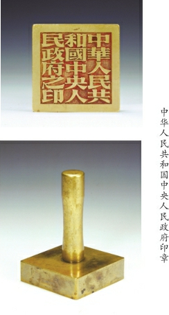 1949年8月19日,“政府印铸问题座谈会”在北京饭店举行,张樾丞等14人出席。会议制定了新中国政府印信的“型式”“字体”“质料”“字文”等印铸问题,同时修正通过“中央人民政府政务院印铸局组织条例”。9月21日至30日,中国人民政治协商会议第一届全体会议召开,会议通过《中华人民共和国中央人民政府组织法》等文件。“中华人民共和国”国名以合乎法律规定的形式确定下来,国印印文“中华人民共和国中央人民政府之印”也随之被最终正式确定。