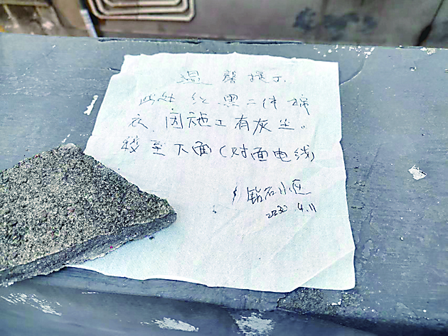 原来,该小区近日正在一处空地上新建小区党建阵地的小楼,有居民将洗好的几件衣服搭在旁边,小区热心人帮忙收起衣物,为防主人找不到,还在原地留下一则手写的温馨提示,并用石块压在显眼处。