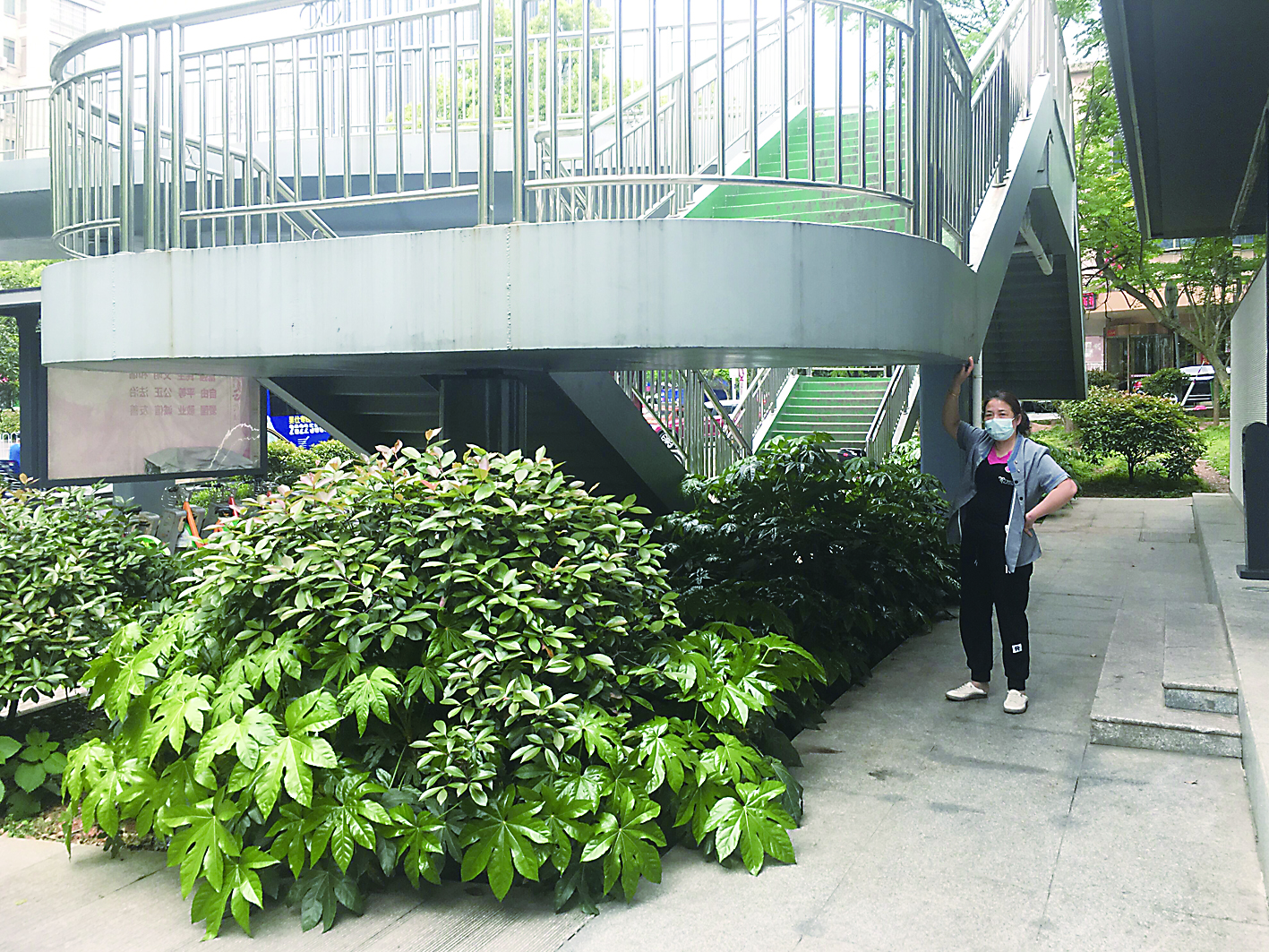 邓喜华称,人行天桥建设时,她曾向施工人员指出过楼梯拐角处过低的问题,当时施工人员称会设提醒标识,但至今没有任何警示标识。
