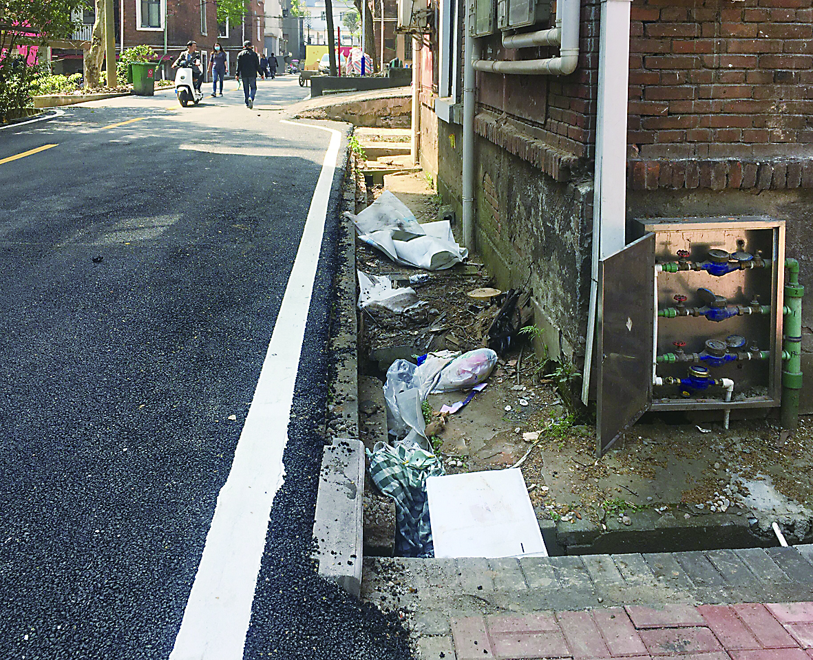 4月10日,石峰区井墈社区株化生活区二区,出现脏乱差现象。多栋居民楼下的水沟堵塞,水沟内堆满生活垃圾、建筑垃圾,未及时清理。还有的水沟垃圾漂浮,淤积堵塞导致污水流不出去,出现积水现象。一位路过的居民表示,希望有关部门能及时清理这些垃圾、疏通水沟。