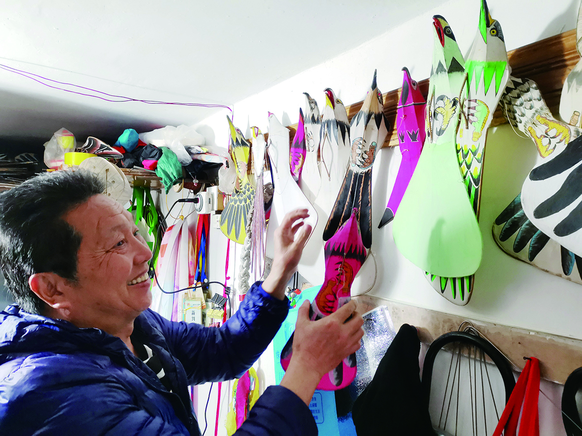 一路闲聊,记者与刘旺发来到了他的风筝宝库。这是一个杂物间改造而来的工作室,里面放着大大小小、各式各样的风筝。