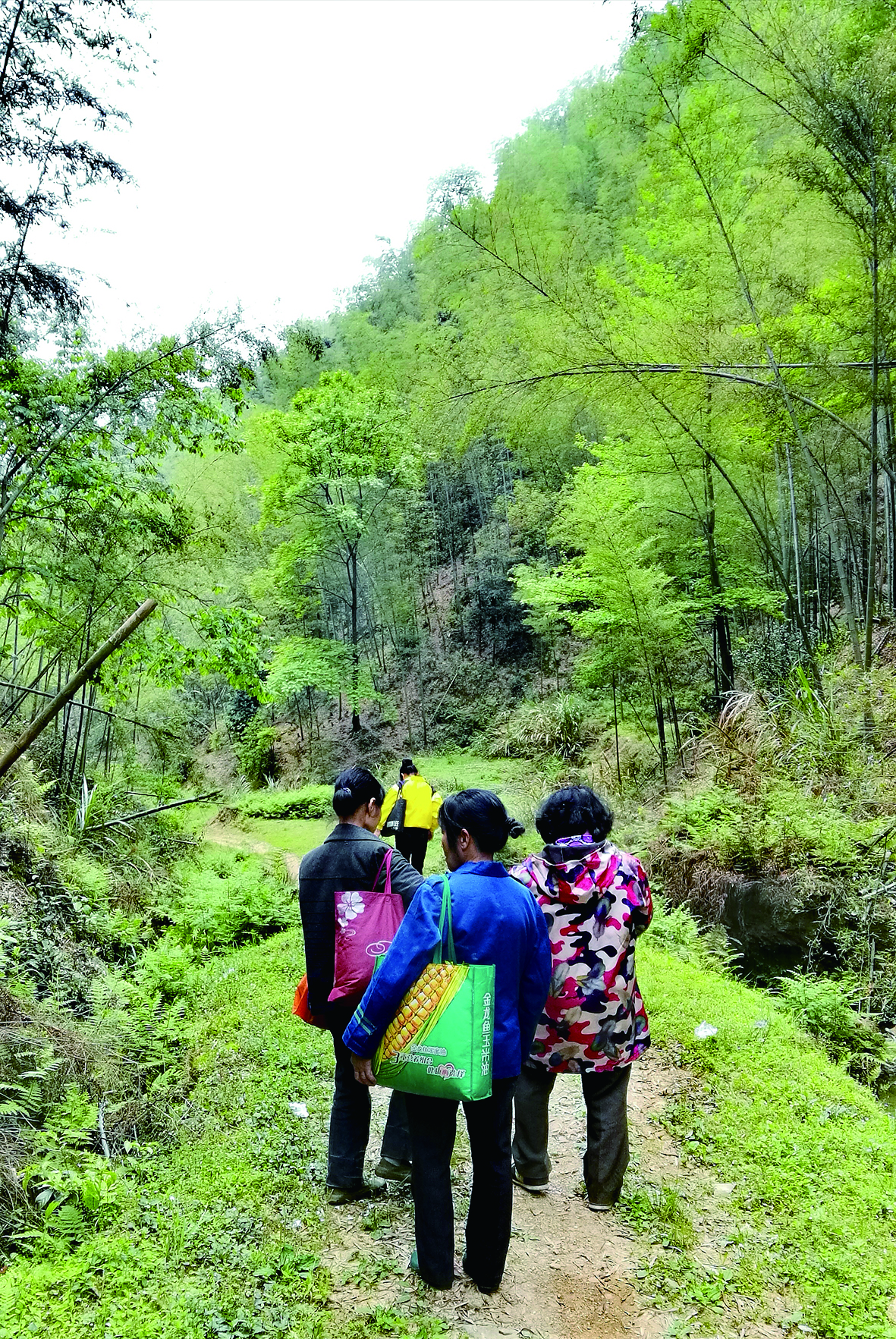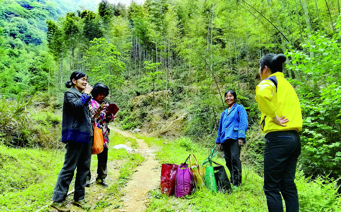 ▲村民上山采摘野茶,林中不时传出阵阵欢笑。