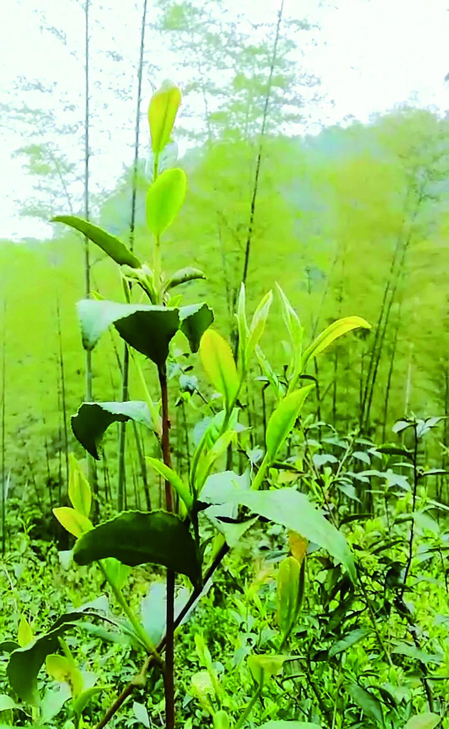 ▲竹林里,野茶树叶散发出淡淡清香。