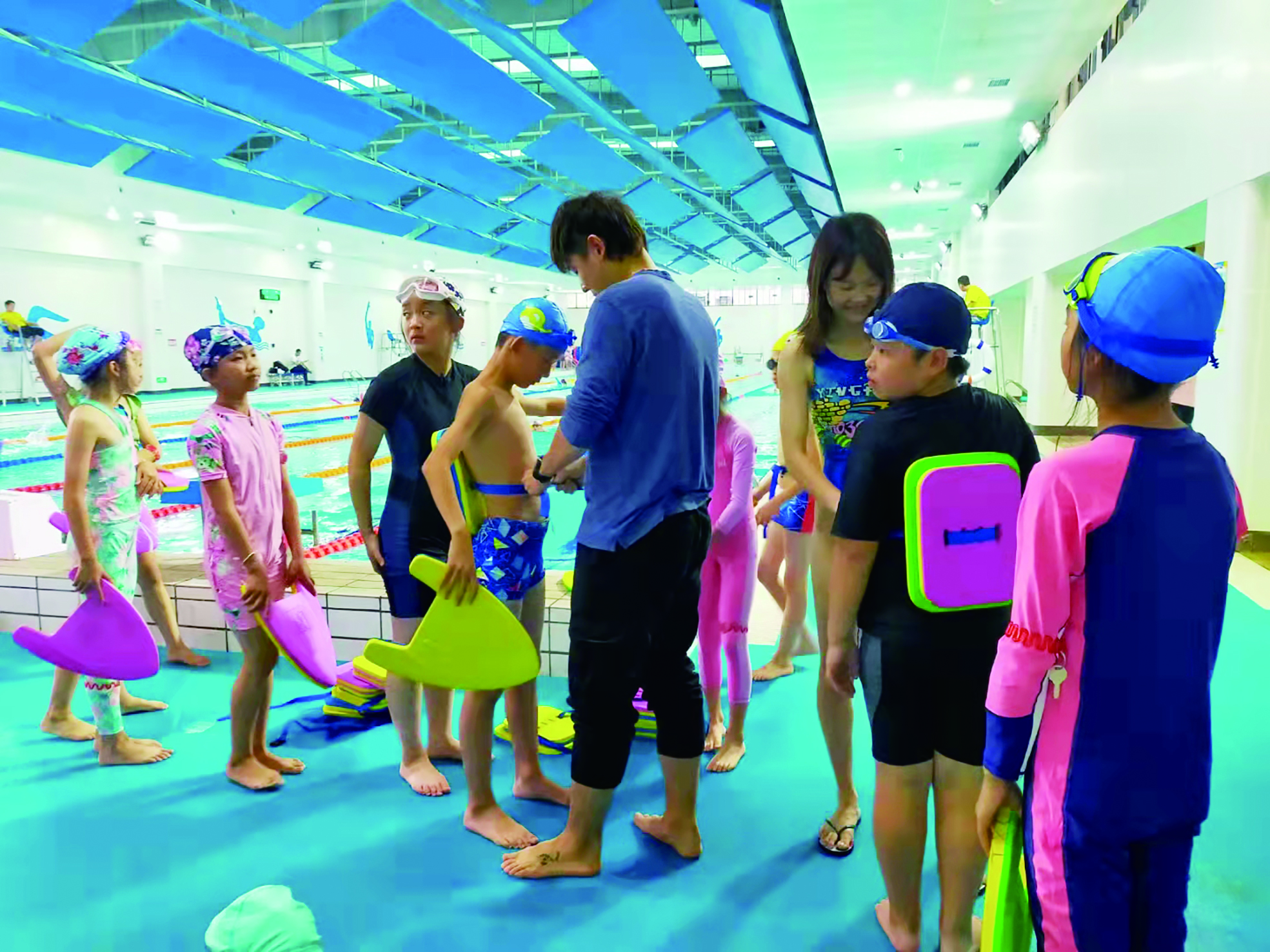 ▲石峰区九方雪峰学校的游泳社团,让孩子们学会生存技能。