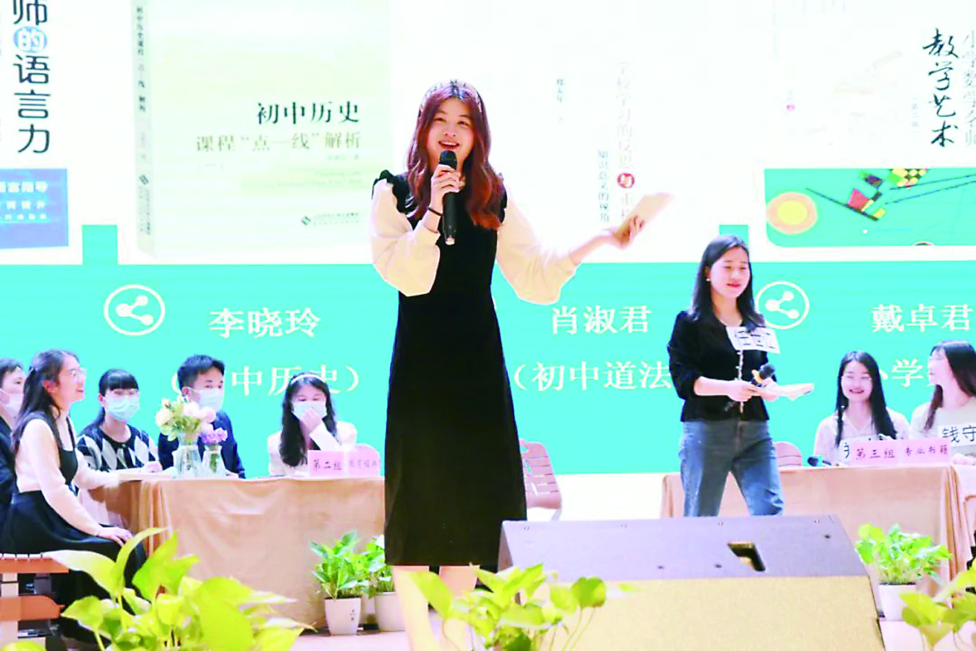 王蔚、李晓玲、肖淑君、戴卓君老师带来了他们心爱的专业书籍——《教师的语言力》《初中历史 课程“点——线”解析》《学校学习的反思与重构 知识意义的视角》和《小学数学名师 数学艺术》。几位老师采取了访谈式的新颖设计,跨越时空化身成为作者和采访人,声情并茂、深入浅出地分享了丰富的教学专业知识。