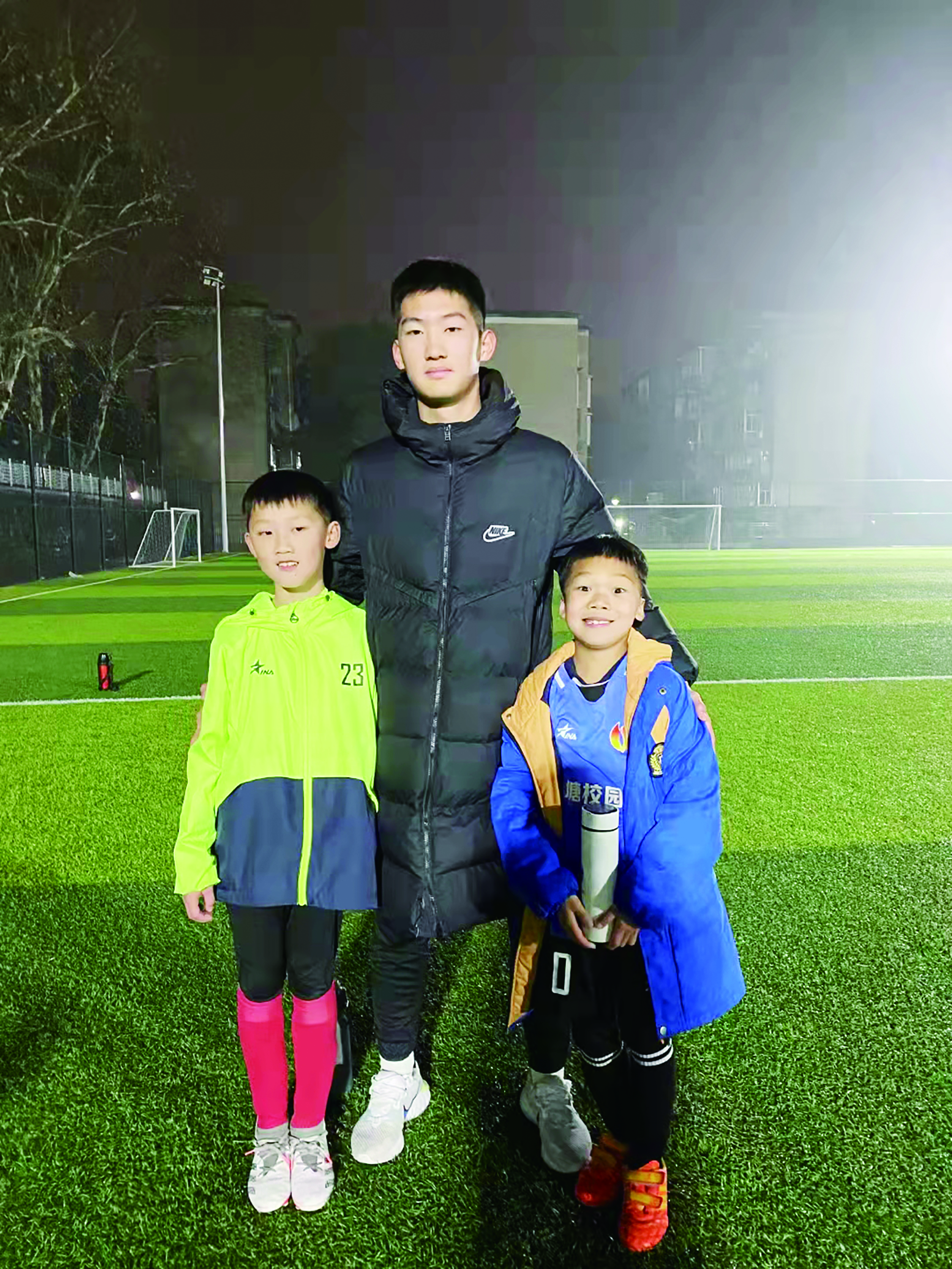 ▲龙廷威训练完后和小球员合影。 谭杰供图