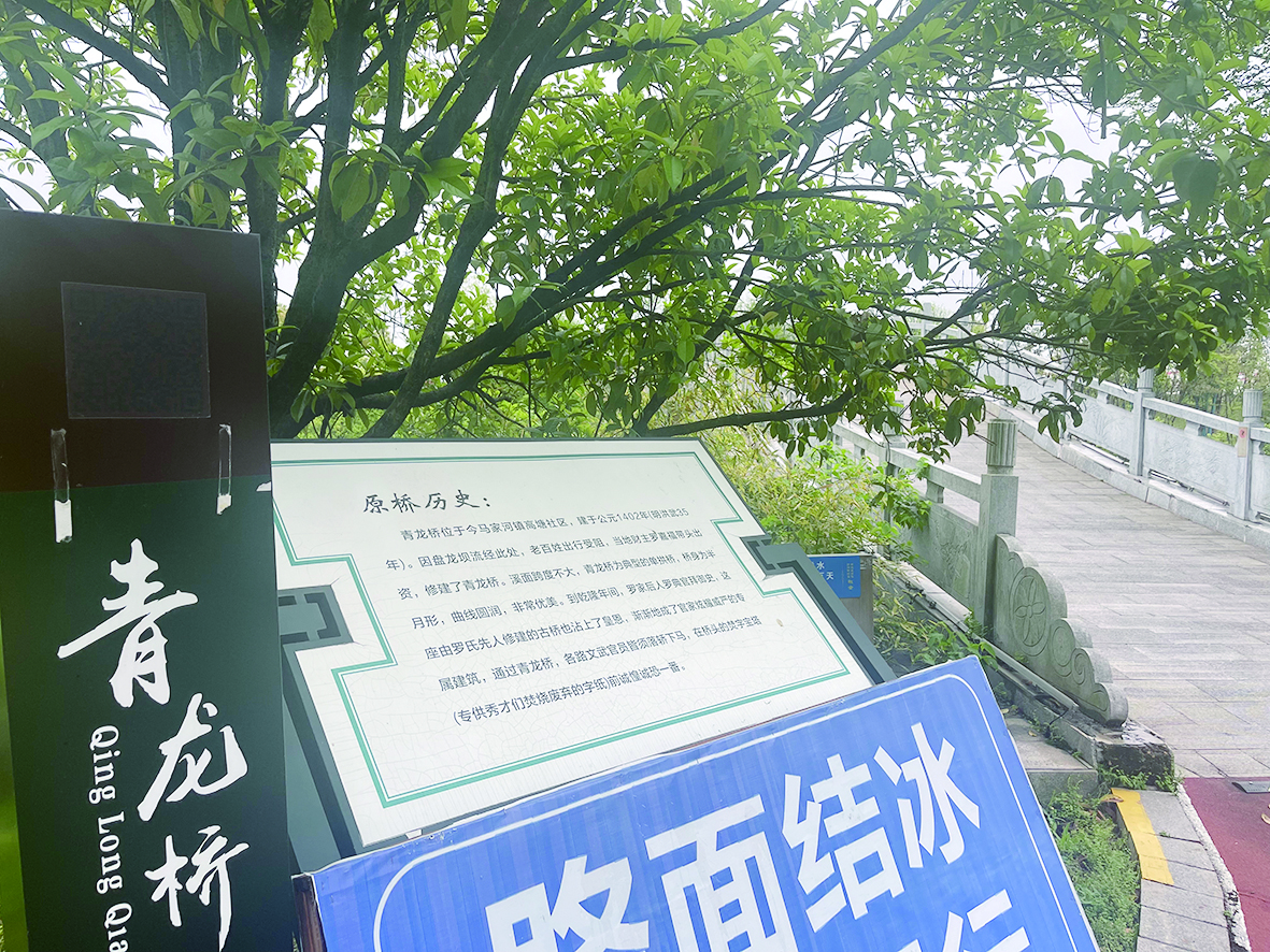 ▲新建的青龙桥,保留了古桥的文字介绍。伍靖雯/摄