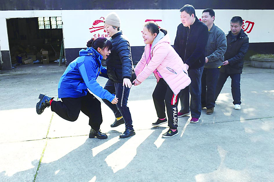 一张、一叠、一沓,动作麻利的小组合,不一会就把工作台堆满。若是累了,老师还会带着大家在院子里做游戏、排节目、唱唱歌等,放松心情。