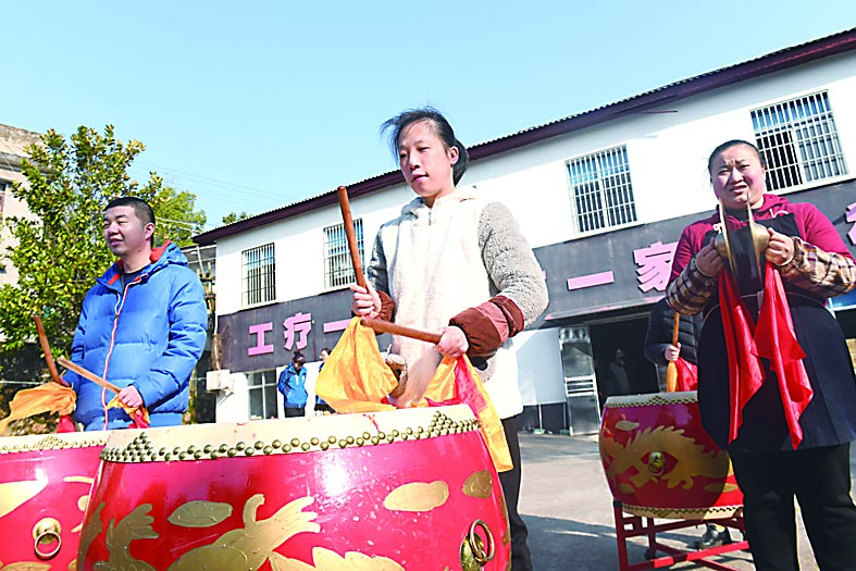 ▲排练威风锣鼓。