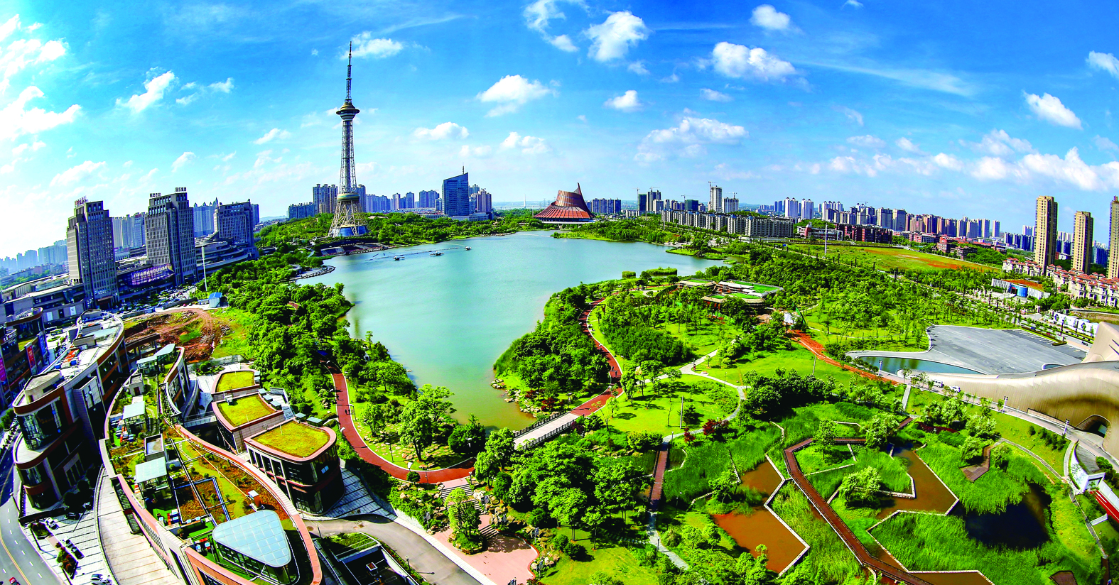▲四月的神农湖,碧波荡漾,绿意环绕,在蓝天白云的映衬下美若画卷。 网友/鸥洋 摄