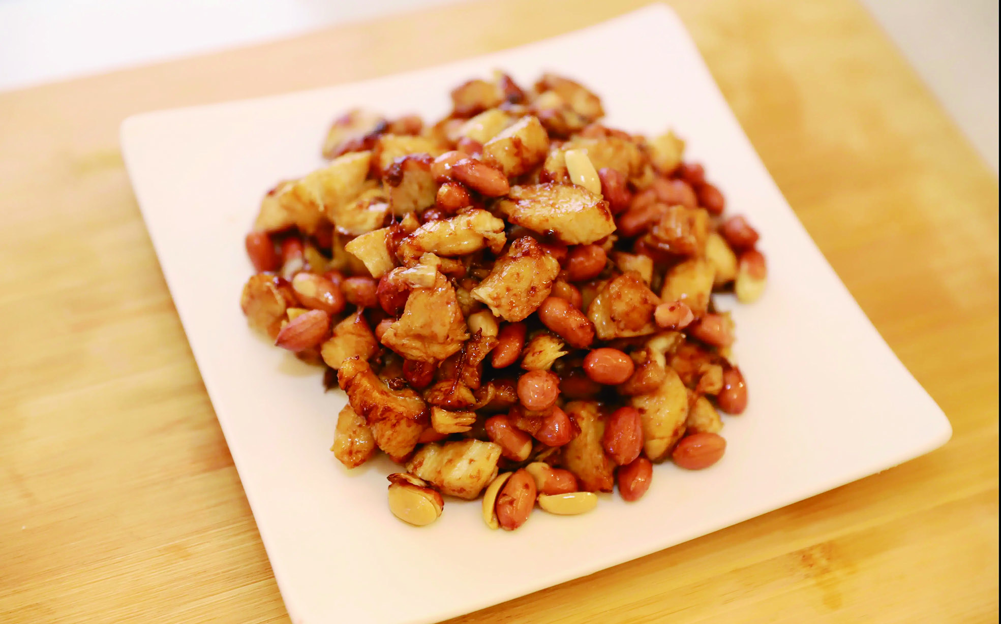 今天,给大家推荐一道有健脾养胃功效的花生米炒鸡丁。