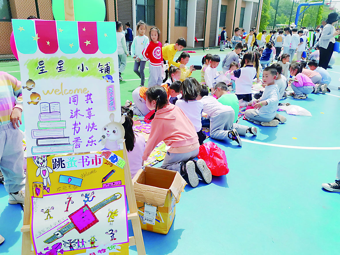 在最后进行的跳蚤书市活动中,同学们纷纷摆出了自己收藏的书籍,在交换中分享读书心得,让老旧的图书焕发新生。