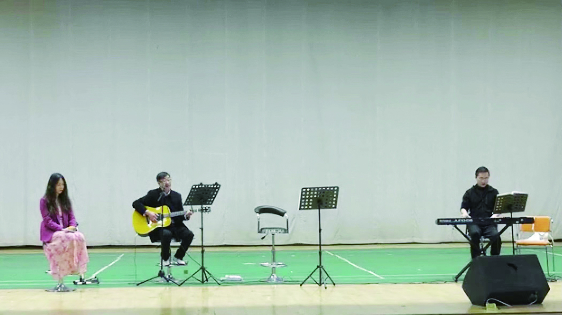据介绍,该校原计划为高三学子开展大型户外心理拓展活动,因下雨临时安排至室内。“想着给学生唱一唱当下的流行歌曲,让他们能够轻松一下,舒缓他们的心情。”唐玄俊告诉记者,自己本身爱好吉他,在学校还组建了一支乐队。