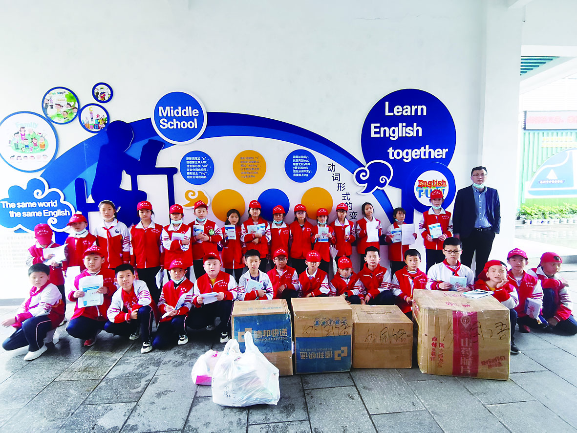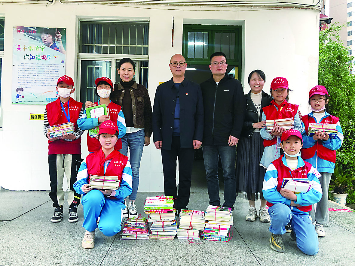 ▲市外国语学校附属第一小学集体捐书共计1201本。辅导老师/贝国华 摄
