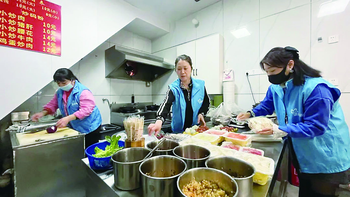 ▲因汤辉手不能切菜,志愿者们一早在玲玲粉店将蔬菜切好并打包。志愿者供图