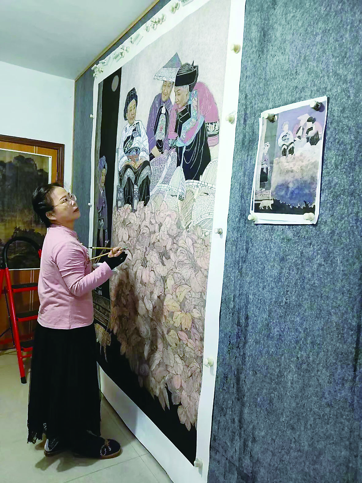 画画的人宜静宜低头绘着,也有某些画画的人动静皆喜,我是那个某些,闲时爱打球爱飙戏,也爱做晒菜坛子菜及各种美好生活,漫写人生,闲逸又紧张,轻轻反复地染着女人眼中美丽的花朵,让冰纨素笺开尽我眼中圆满的色彩。那些纨扇,是我喜欢描绘的物品,我亦喜欢在衣服鞋子围巾上面描绘自己喜欢的一花一草,常常买来一些盘扣类型的衣服勾勾染染,全是女子性情。冷冷清清地工作着,也会风风火火地出现在乒乓球台边,偶尔还会重施粉黛着戏服,出现在舞台,绘者冷清,我爱绘画,生活美好,我亦爱生活。