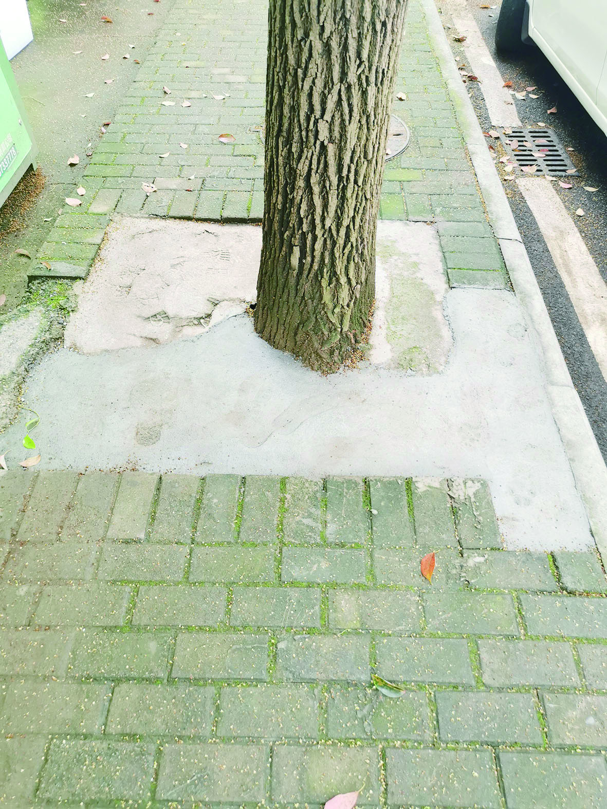 ▲人行道上的大洞已被修好。 受访者供图