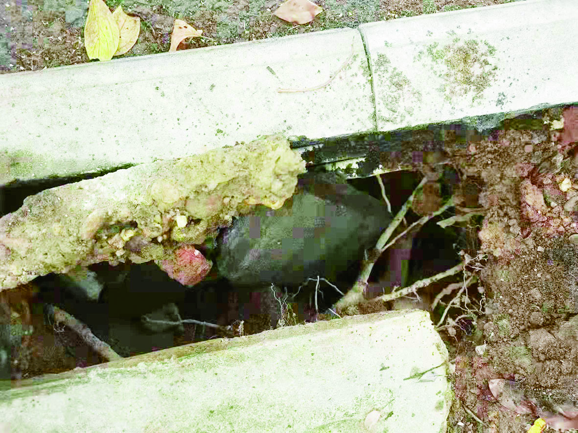 ▲泰华二村8栋附近人行道有个大洞。 受访者供图