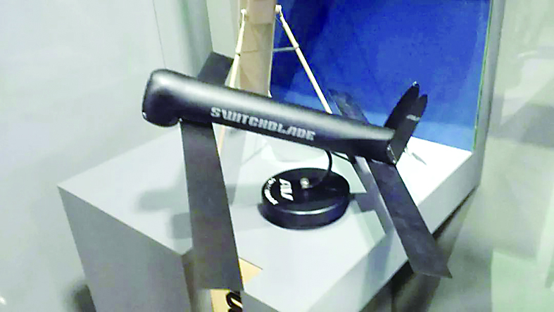 “弹簧刀”,形似小型无人机,装备一个小型弹头,可“待机”执行多种作战任务。一旦发现攻击目标,立刻变身为小型导弹,与锁定的目标同归于尽。