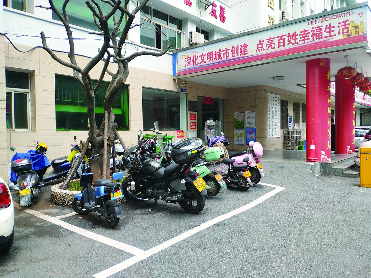 ▲月塘街道规范停车,违停现象大为改观。记者/廖智勇 摄