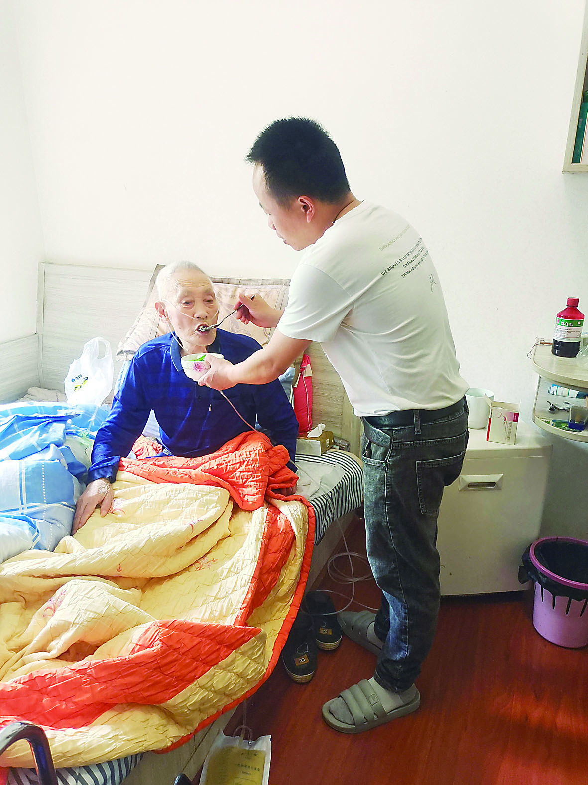 本报讯(株洲晚报融媒体记者/杨如 通讯员/姚宇 王正根)“大伯,来!张开嘴,该吃药了。”4月27日, 85岁的王杨凡老人躺在床上,侄儿王勇端着一杯温水,将他扶起来喂药。