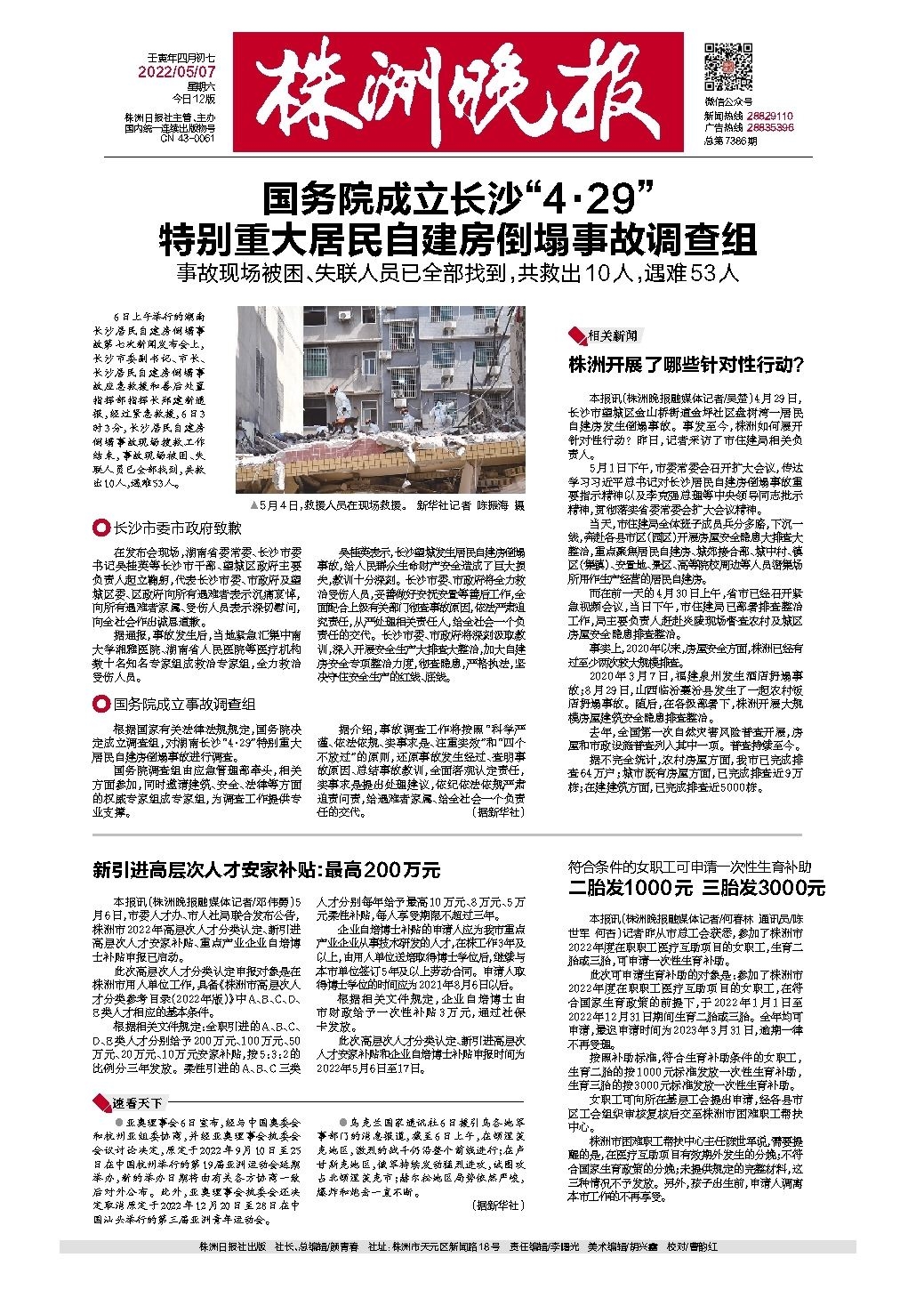 国务院成立长沙“4·29”特别重大居民自建房倒塌事故调查组