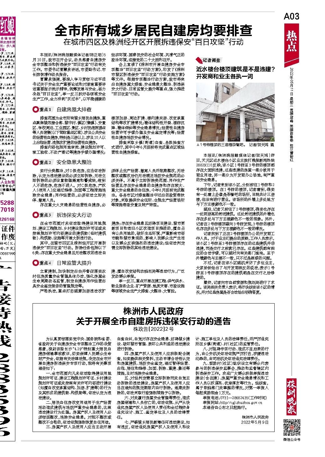 株洲市人民政府 关于开展全市自建房拆违保安行动的通告