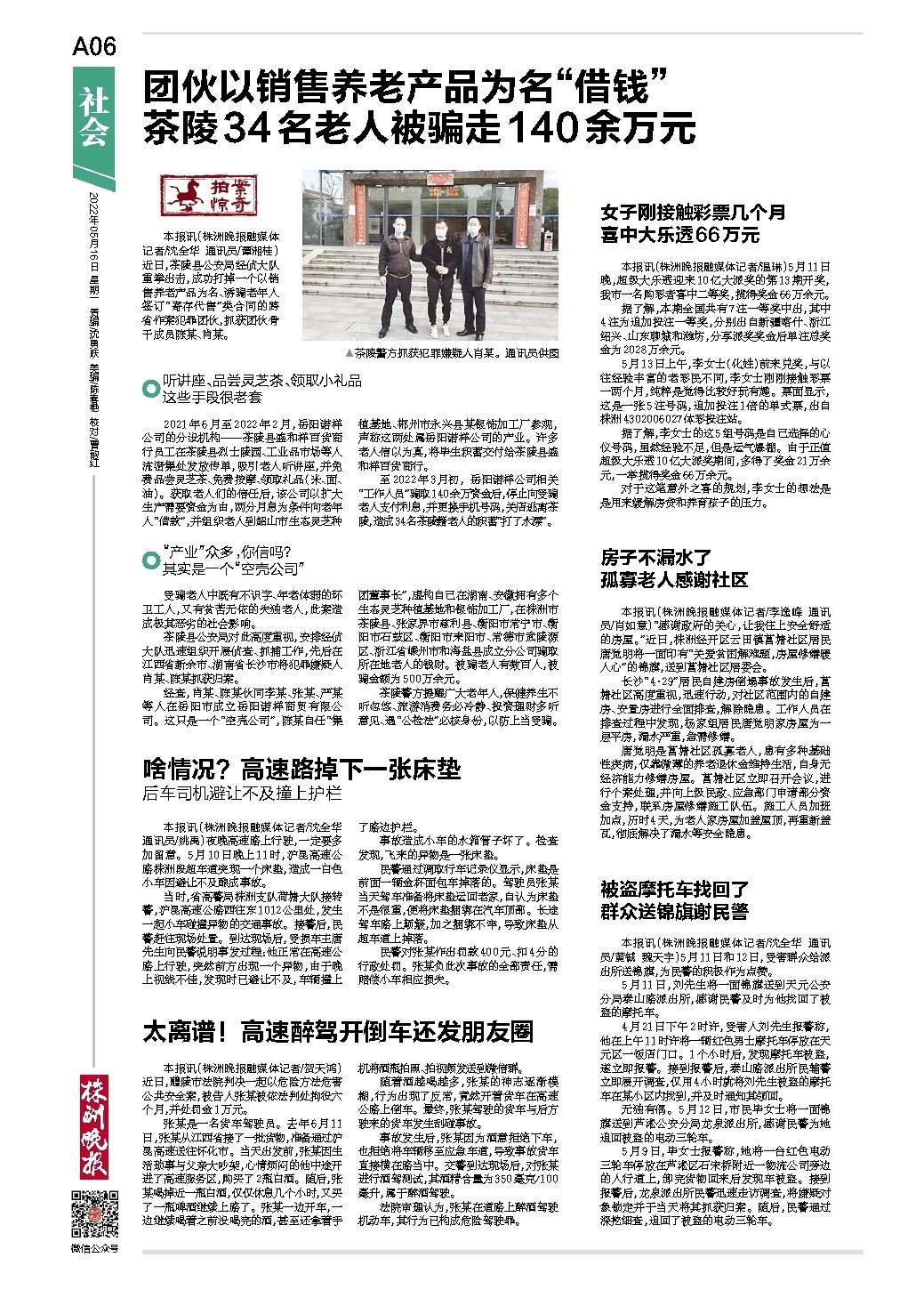 团伙以销售养老产品为名“借钱”茶陵34名老人被骗走140余万元