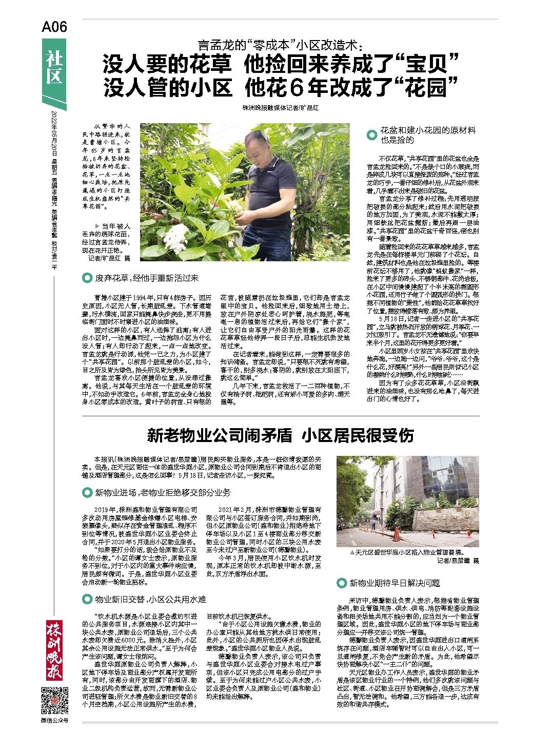 没人要的花草 他捡回来养成了“宝贝”没人管的小区 他花6年改成了“花园”