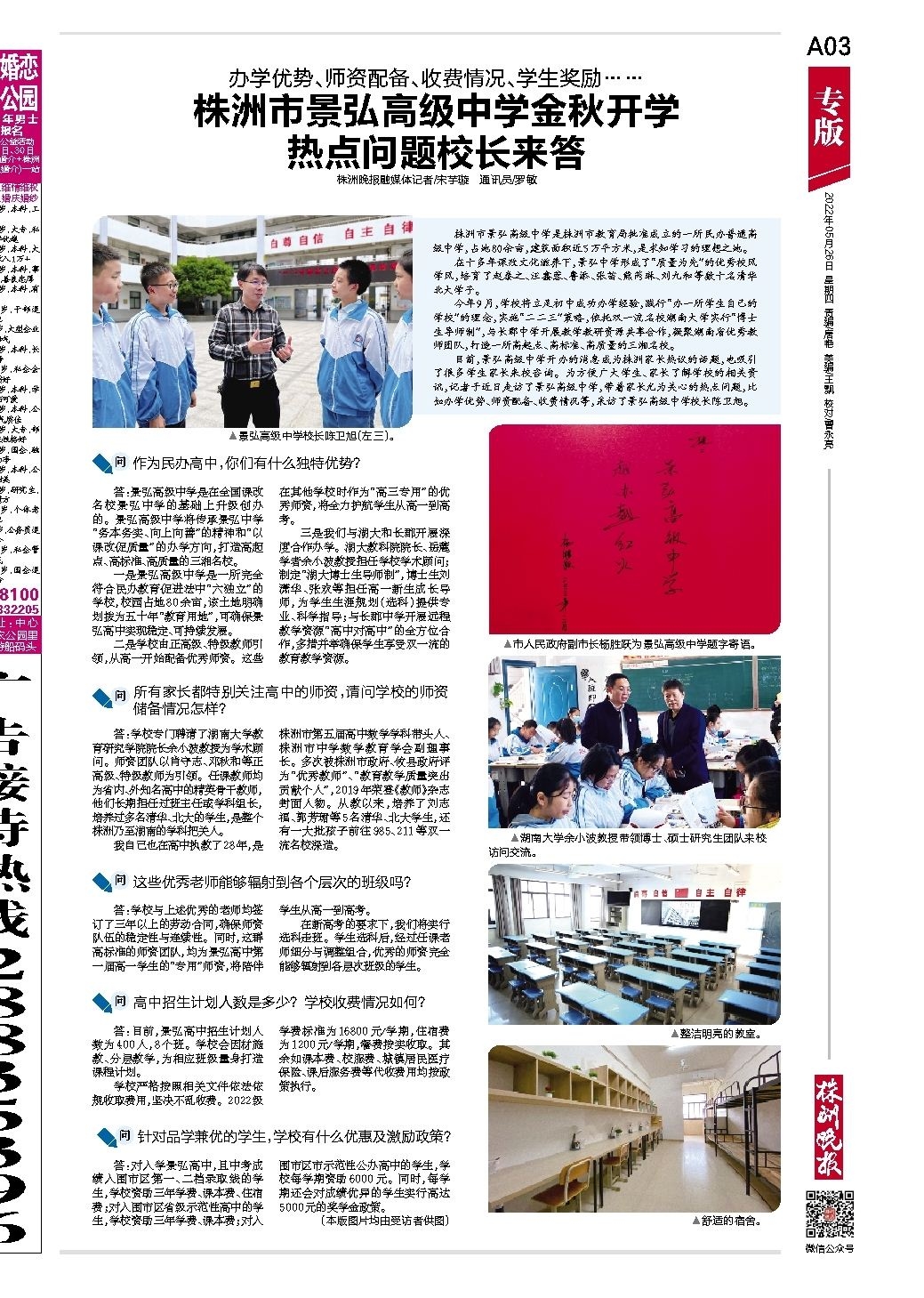 株洲市景弘高级中学金秋开学 热点问题校长来答