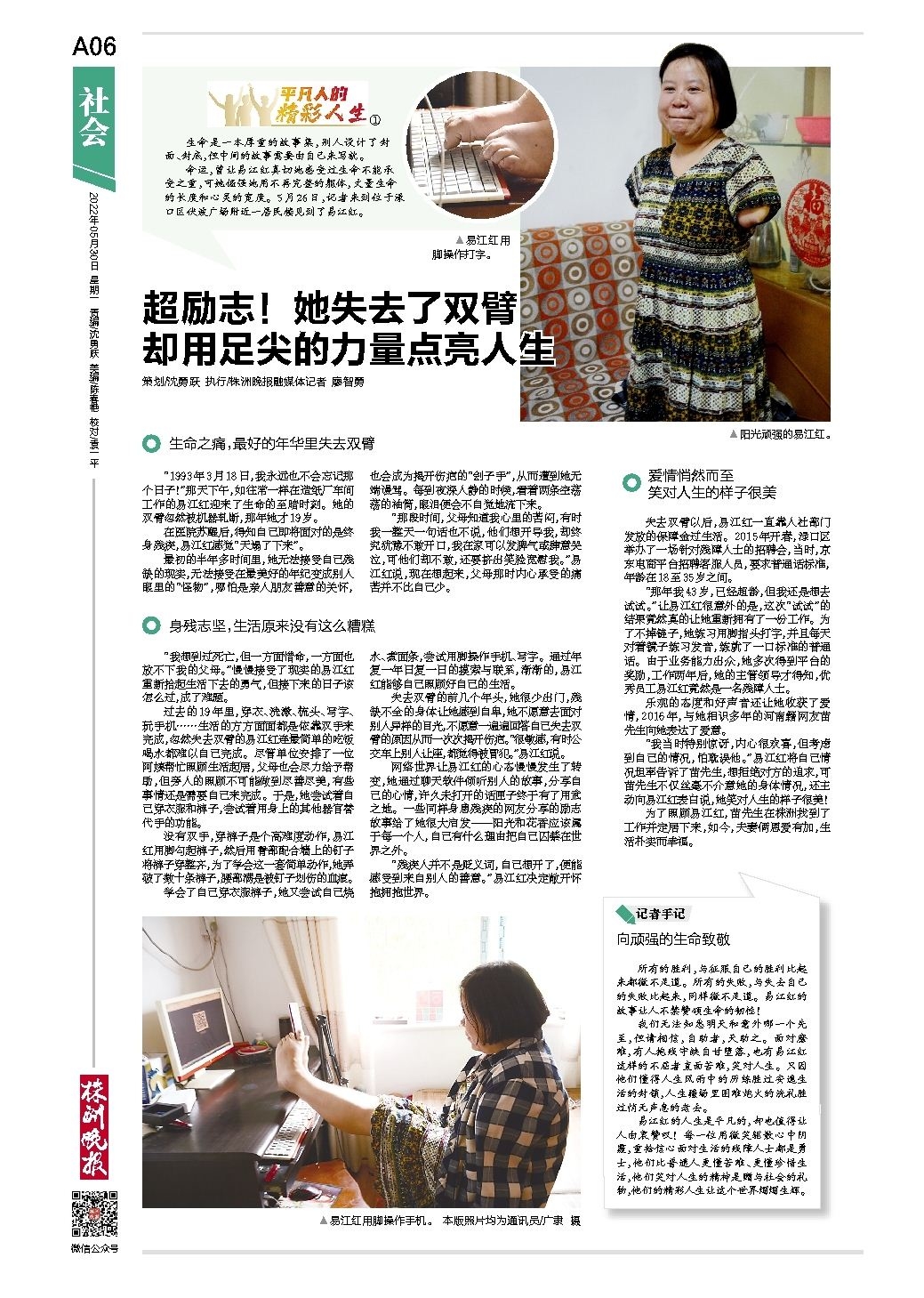 超励志!她失去了双臂却用足尖的力量点亮人生