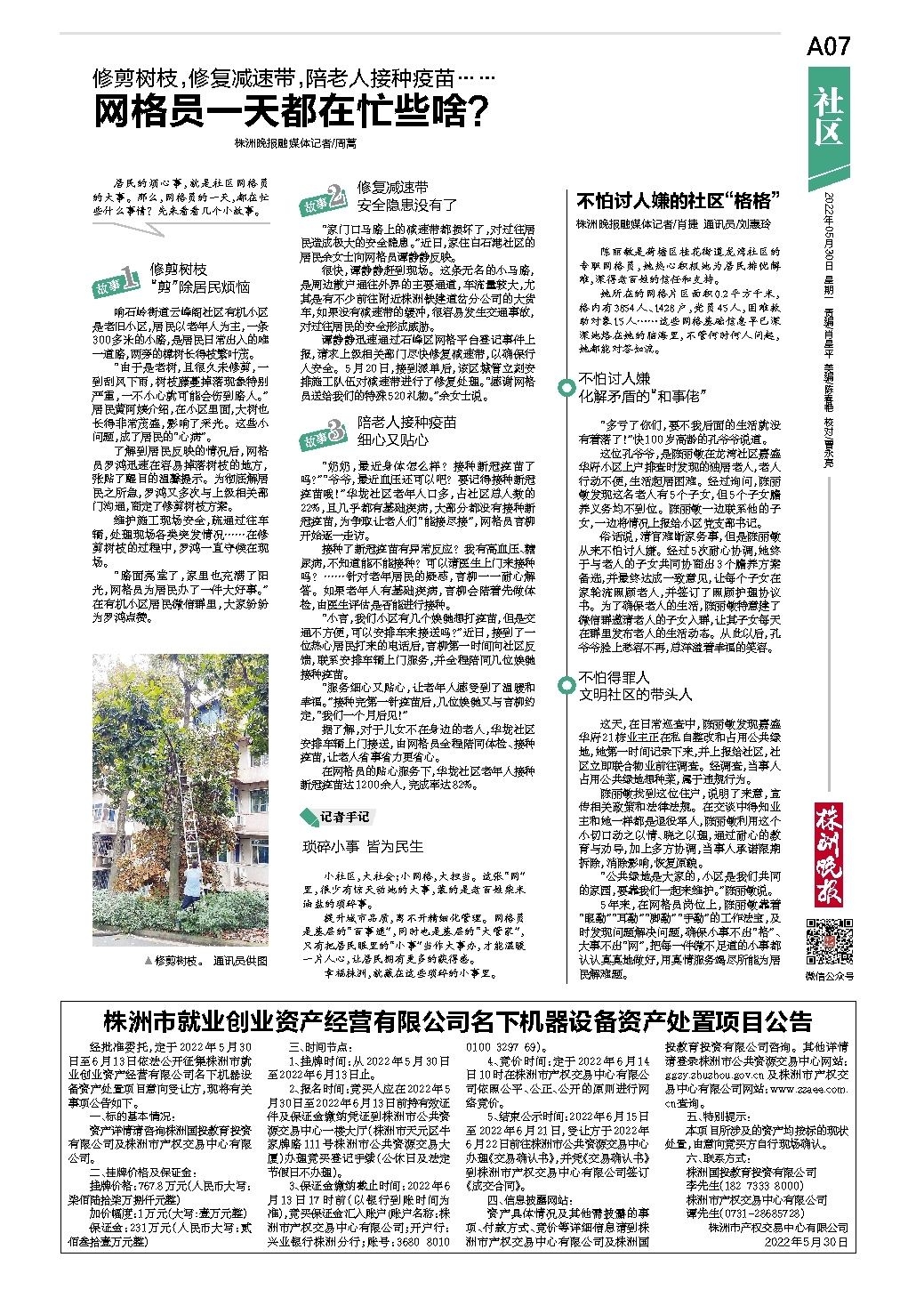 株洲市就业创业资产经营有限公司名下机器设备资产处置项目公告