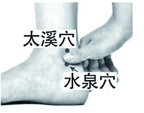 按摩水泉穴:水泉穴与太溪穴是邻居,就在太溪穴下1寸处。按摩该穴位,有清热益肾、疏利下焦的作用。