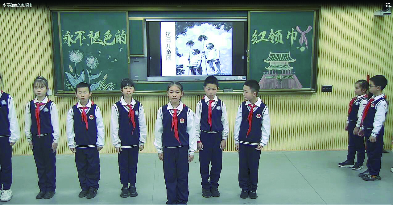 ▶董家塅小学的同学们分享英雄故事。 通讯员供图