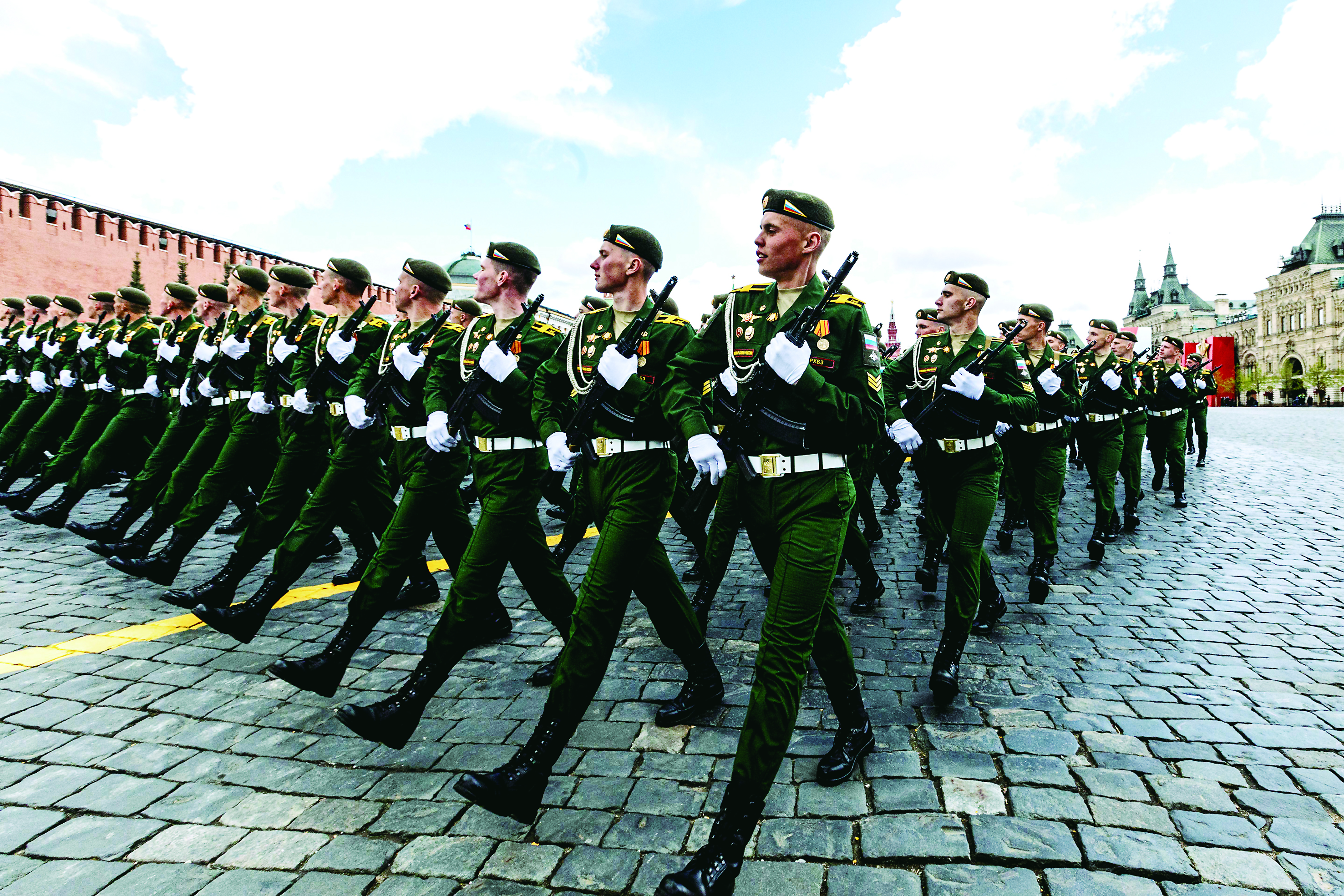 ▲5月9日,在俄罗斯首都莫斯科,士兵列队走过红场。据新华社
