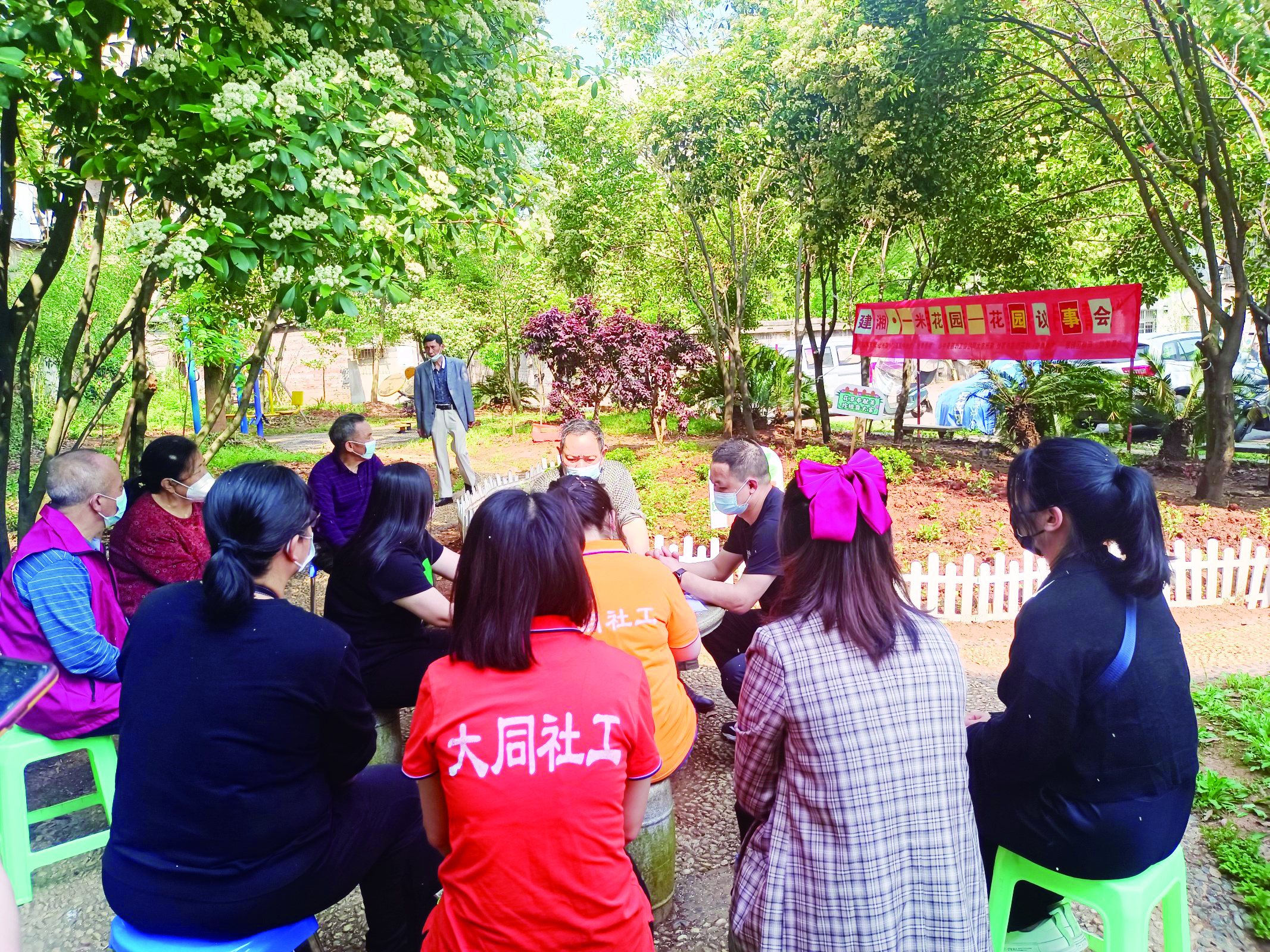依托这一阵地,“花园议事会”也成立了。大家在花园里坐坐,定期邀请街道社区负责人、党员、网格员、楼栋长和热心居民开展议事会,对居民反映的问题进行商量讨论,拿出解决方案,明确责任人落实,群策群力为社区治理贡献力量。