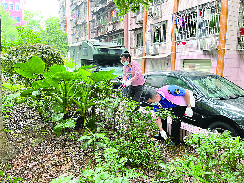 本报讯(株洲晚报融媒体记者/谭昕吾 通讯员/罗雄武)5月9日一早,天元区联谊怡沁园里一副热火朝天的景象,机关干部、社区工作者和志愿者为小区的绿化带进行修剪,把乱停乱放的非机动车辆摆放整齐,将居民楼楼道堆积的废弃物清理运走,许多居民也自发参与清扫工作。天元区嵩山路街道利用每月9日的“九·久志愿服务日”,推动文明城市创建,营造人人参与的创文浓厚氛围。